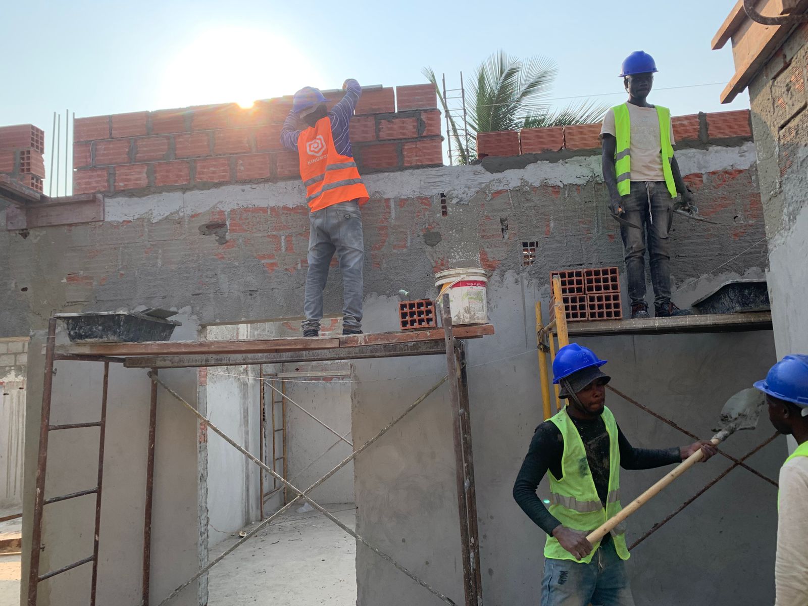 Execução de paredes, revestimentos, pinturas, pisos, forros, esquadrias, instalações elétricas e hidráulicas.
